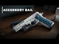- Slide: Hand fitted to frame, with lightning cuts for fast lockup time, cocking serrations, a flared ejection port, and an optics cut