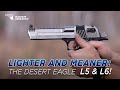 Weighing at almost 5 pounds, the stout Desert Eagle has always been a hefty magnum handgun. Now, Magnum Research is proud to introduce a lighter weight model which makes a noticeable difference when handling the pistol. Through the use of an alloy frame and weight reducing cuts, the Desert Eagle L5 is just under one pound lighter than the steel framed models. The single action pistol has a crisp 4-pound trigger pull. The lightweight Desert Eagle L5 takes the same magazines as the current steel models.